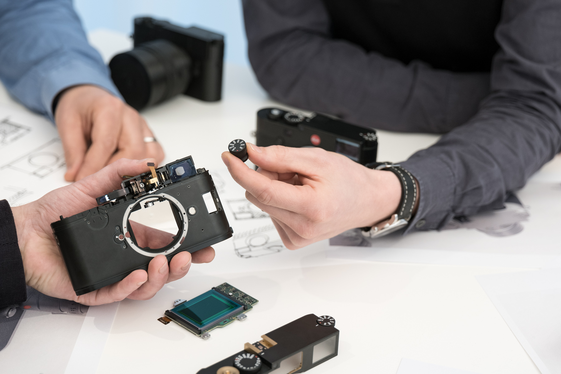 Jedną z najbardziej charakterystycznych cech Leiki M10 jest pokrętło ISO, które umieściliśmy na górnej ściance. Po raz pierwszy w cyfrowej Leice wszystkie podstawowe funkcje fotograficzne: nastawianie ostrości, dobór przysłony, czasu migawki oraz czułości ISO mogą być ustawione manualnie bez wchodzenia do menu, a nawet bez włączania aparatu. Takie rozwiązanie sprawia, że M10 świetnie sprawdza się w sytuacjach, gdy dyskrecja fotografującego odgrywa kluczową rolę.